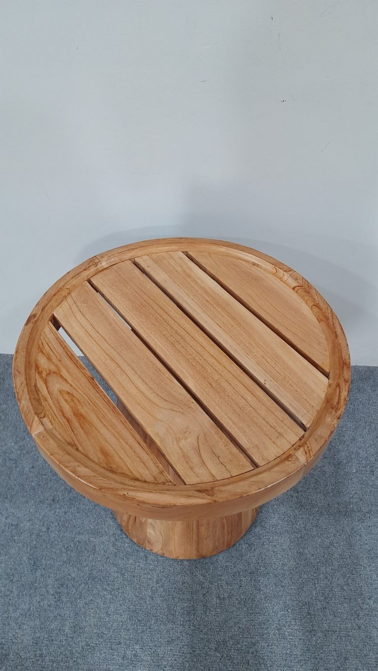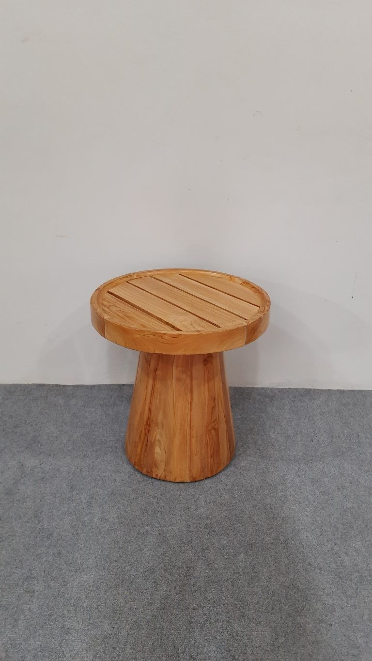 Handcrafted from premium teak wood, this side table radiates a timeless charm that effortlessly complements any indoor environment. Its sturdy build and durable finish ensure a reliable companion for both cozy living rooms and charming bedroom. Whether positioned beside a sofa indoors or as a companion to living seating, this wood Side Table embodies the essence of versatile design, epitomizing the harmonious union of aesthetics and functionality.